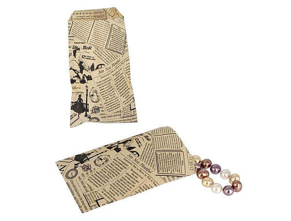 Because my jewelry shop sells vintage-style jewelry, I wanted gift bags with a vintage feel to it. The red polka dot pattern is perfect, as they remind of the Rockabilly style, and kraft paper bags with old newspaper and damask designs are perfect for my minimalist jewelry. Fortunately, Nile Corp sells both of them.